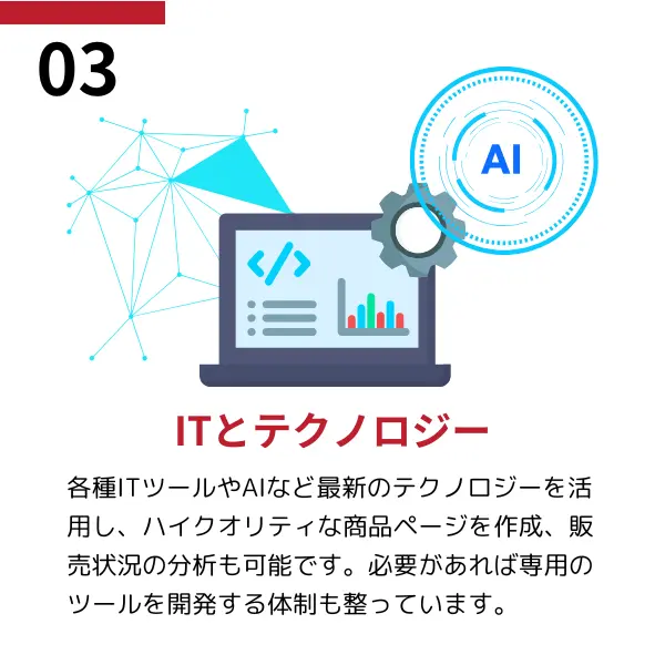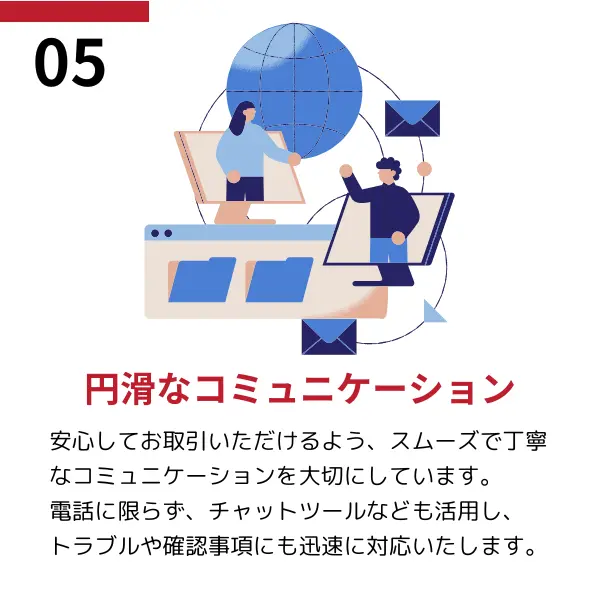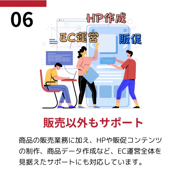 こうした業務を通じて培ったEC運営の知見を活かした販売体制により、安心してお取引いただける体制を整えています。